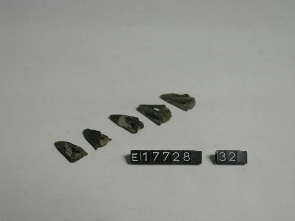 Punta di freccia conica con tre costolature taglienti; immanicatura con foro circolare.