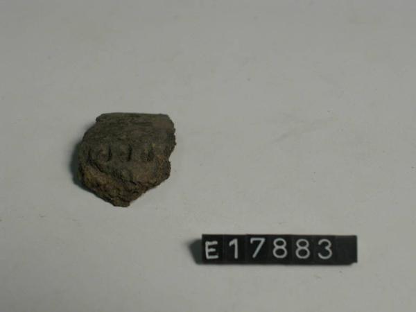 Frammento di parete in impasto grossolano decorato a tacche.