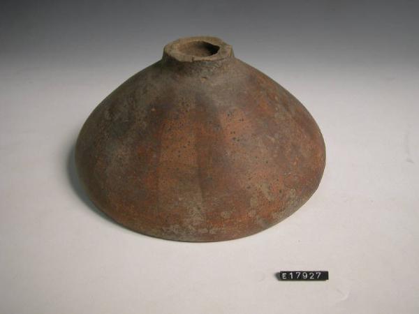 Coppa troncoconica su alto piede non conservato; labbro rientrante; decorazione sovraddipinta costituita da fasce rosse disposte a raggiera