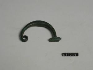 Fibula ad arco ingrossato con decorazione incisa a linee parallele alternate a fasce di linee a spina di pesce