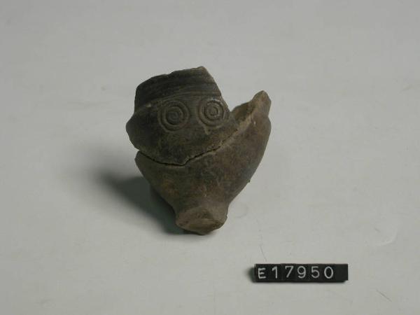 Bicchiere a portauovo con decorazione a stampiglia costituita da due motivi a tre cerchietti concentrici.