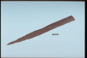 Frammento di lama di spada a lati paralleli convergenti verso la punta,sezione a losanga.