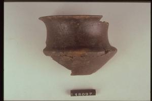 Bicchiere con labbro svasato, collo conico, carena pronunciata, ventre fortemente rastremato, fondo piano ombelicato.