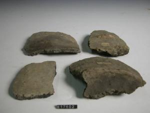 Frammenti di fondo e parete di cui uno provvisto di una linguetta, probabilmente pertinenti ad uno stesso dolio. All'interno si sono conservate tracce di sostanza organica combusta.