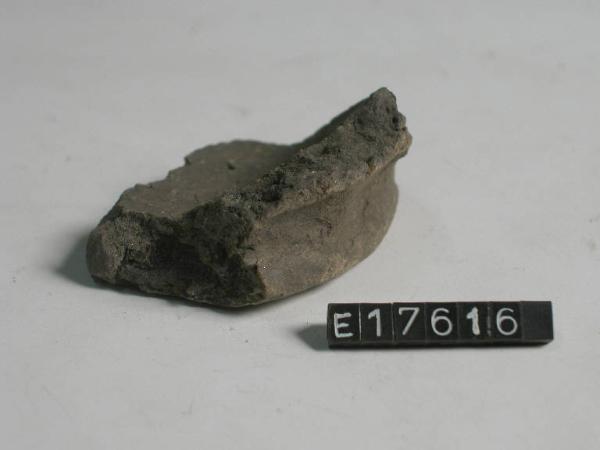 Frammento di piede a tacco con fondo piano e attacco della parete.