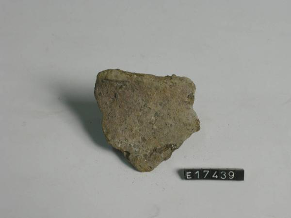 Recipiente ovoide (?) con labbro eesoverso e orlo arrotondato.