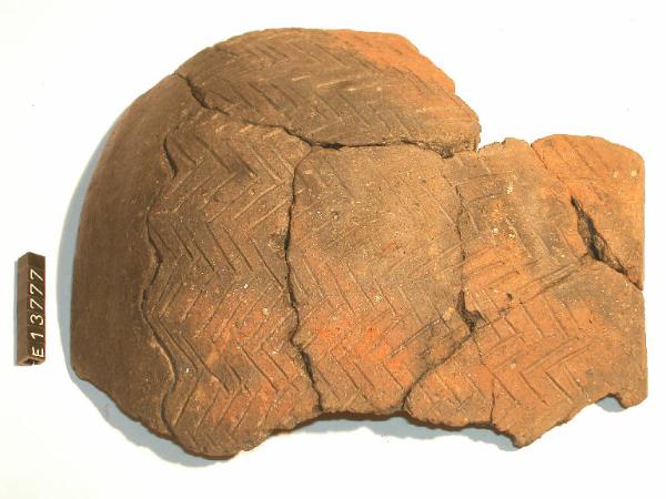Frammenti di olla decorata al di sotto del labbro da una solcatura ondulata e da solcatre a spina di pesce disposte per bande verticali.