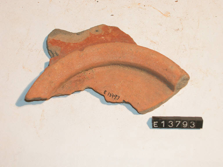 Frammento di fondo di ciotola con piede ad anello e tracce di dipintura sia interna che esterna.