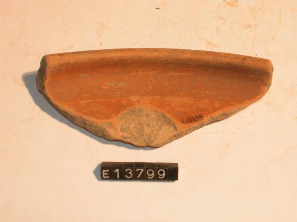 Frammento di orlo e parete di ciotola a corpo poco profondo con labbro verticale e orlo arrotondato.