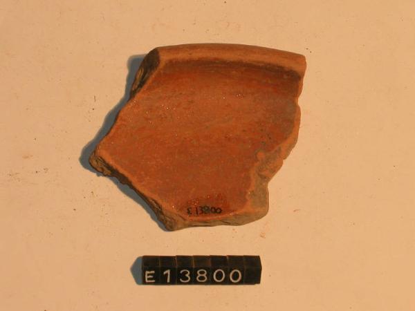 Frammento di orlo e parete di patera con labbro verticale e tracce di dipintura sia interna che esterna.