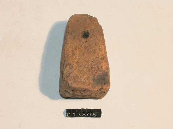 Peso da telaio a forma troncopiramidale con foro passante e base quadrata.