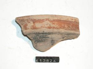 Frammento di orlo e parete di ciotola con orlo arrotondato e spalla carenata. Tracce di dipintura sia interna che esterna.