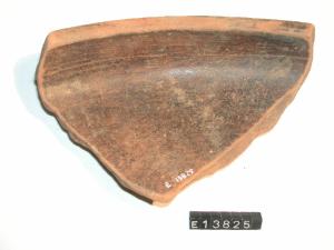 Frammento di orlo e parete di ciotola a corpo poco profondo, labbro verticale. Tracce di dipintura sia interna che esterna.
