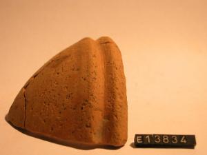 Frammento di orlo e parete di scodella con corpo troncoconico, orlo cordonato e breve gola marcata. Tracce di dipintura sia interna che esterna.