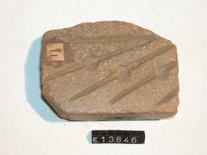 Frammento di forma di fusione rettangolare con forma di spillone (?) su una faccia, di lamina rettangolare sull'altra.