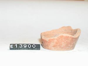 Frammento di fondo di bicchiere a risega mediana con tracce di dipintura esterna.