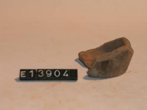 Frammento di fondo di bicchiere a risega mediana. Tracce di dipintura esterna.