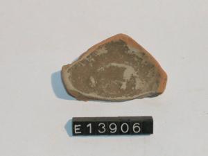 Frammento di fondo e parete di piccola ciotola con fondo piatto e tracce di dipintura nera esterna.