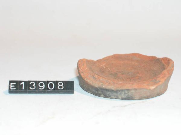 Frammento di fondo di bicchiere con tracce di dipintura esterna.