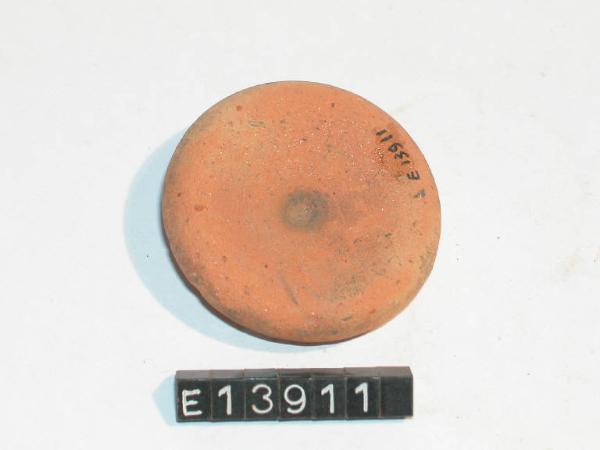 Frammento di fondo di bicchiere a portauovo con tracce di dipintura esterna.