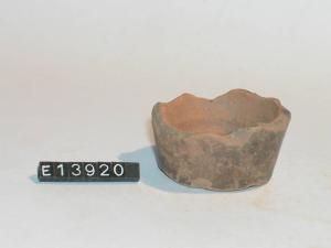 Frammento di fondo di bicchiere a risega mediana con tracce di dipintura esterna.
