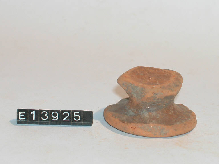 Frammento di piede svasato di bicchiere a portauovo con tracce di dipintura esterna ed interna.