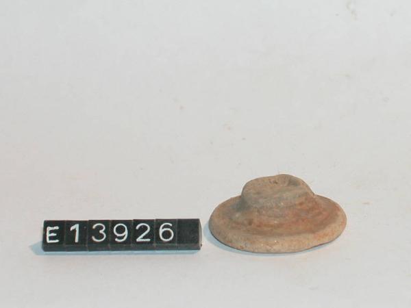 Frammento di piede svasato di bicchiere a portauovo con tracce di dipintura esterna.