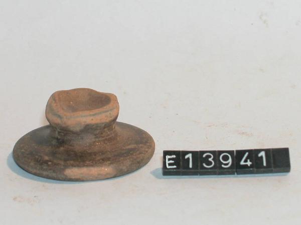 Piccolo piede svasato di bicchiere a portauovo con tracce di dipintura esterna.