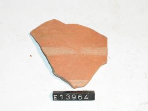 Frammento di parete di recipiente dipinto sulla superficie esterna con fasce bianche.