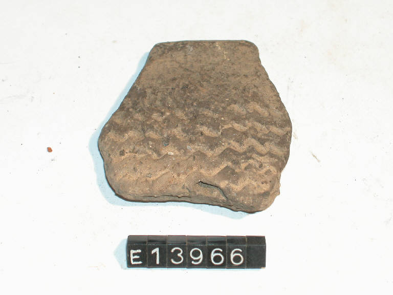 Frammento di orlo e parete di olla con orlo obliquo; decorazione ad onde sotto la spalla.