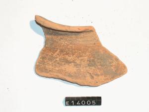 Frammento di orlo e parete di olla. Labbro esoverso e collo verticale. Ceramica dipinta internamente ed esternamente.