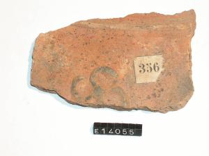 Frammento di parete di recipiente decorato da un cordone e da un motivo floreale stilizzato.