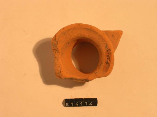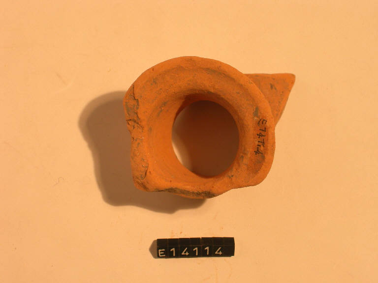 Frammento di orlo e parete di recipiente con orlo piatto e collo cilindrico.
