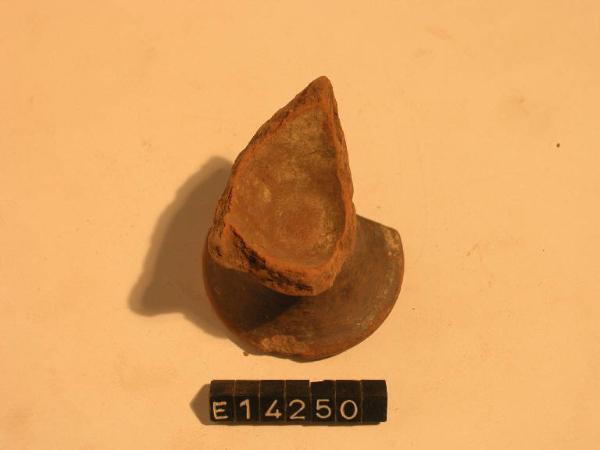 Frammento di piede di bicchiere a risega mediana tipo A, con superficie esterna bruna lucida.