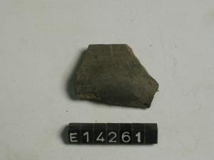Frammento di orlo e parete di ciotola con orlo arrotondato e labbro diritto.