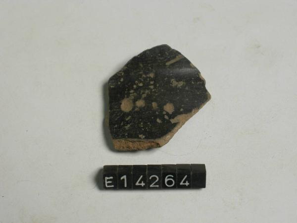 Frammento di parete di bicchierino con superficie interna ed esterna a stralucido nero.