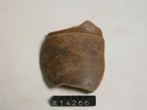Frammento di parete di bicchiere a risega mediana tipo D2, con superficie esterna bruna lucida.