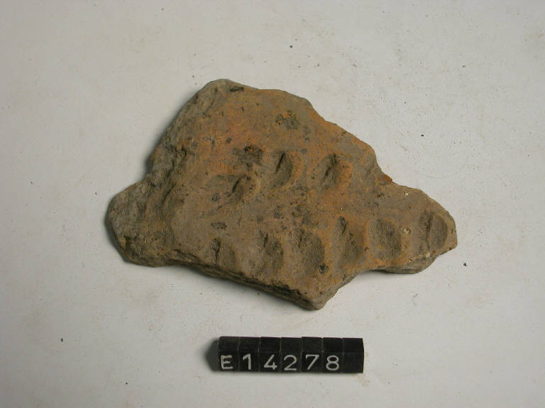 Frammento di orlo e parete di olla con decorazione ad alveare.