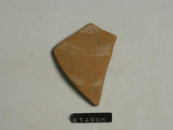 Frammento di parete di vaso a trottola decorato da fasce orizzontali di color crema