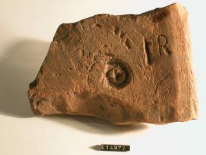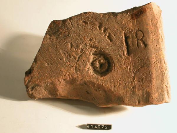 Frammento di laterizio con figura antropomorfa graffita e iscrizione