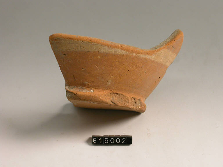 Frammento di fondo piatto e piede ad anello e parete decorata da fasce bianche dipinte, probabilmente pertinente a vaso a trottola
