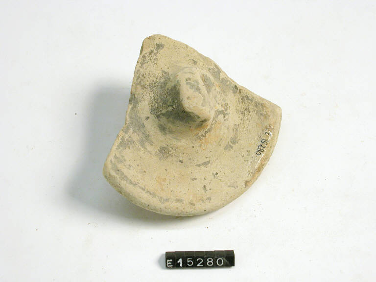 Frammento di coperchio con orlo arrotondato e presa centrale.