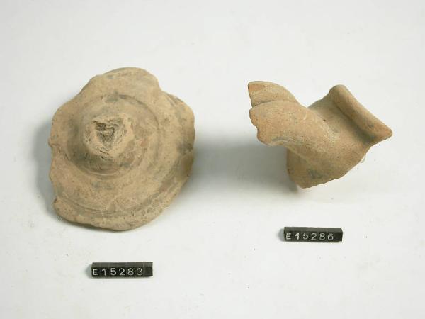 orlo ingrossato e frammento di ansa a doppio bastoncello.