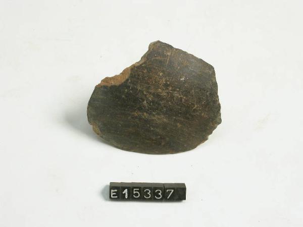 Frammento di parete riconducibile ad un frammento di spalla arrotondata. Superficie esterna di colore nero-lucido.