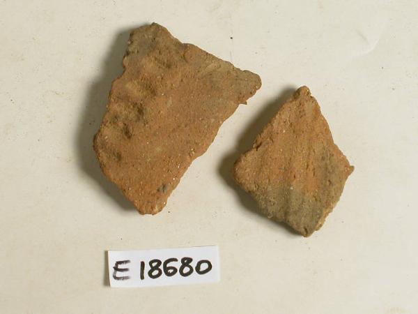 Frammenti di parete; lungo la spalla decorazione a impressioni digitali e costolature oblique.