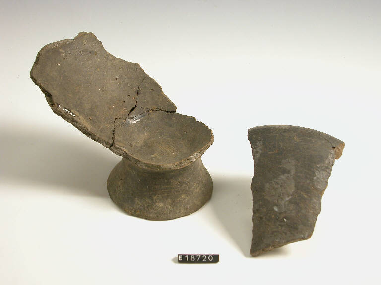 Coppa su medio piede a corpo troncoconico con labbro rientrante e orlo assottigliato.
