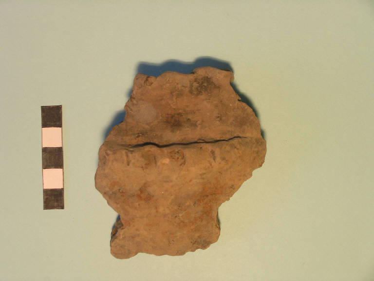 argilla/ lavorazione a mano||impasto grossolano, superficie scabra||colore bruno-arancio