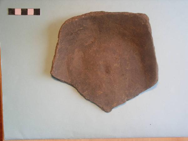 Fondo piatto frammentario con attacco di parete rettilinea.