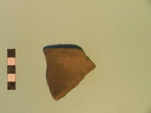 Frammento di orlo arrotondato, labbro fortemente esoverso, pertinente a vaso biconico/olla.