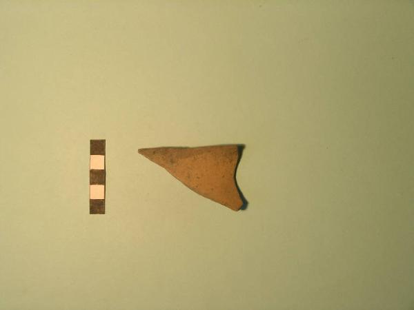 Frammento di scodella carenata, orlo arrotondato, labbro esoverso, parete esoversa concava.